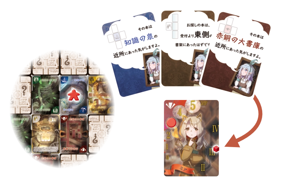 2.今いる場所が得られた手掛かりと合っていれば、目的の本を発見して知識を1つ手に入れることができます。